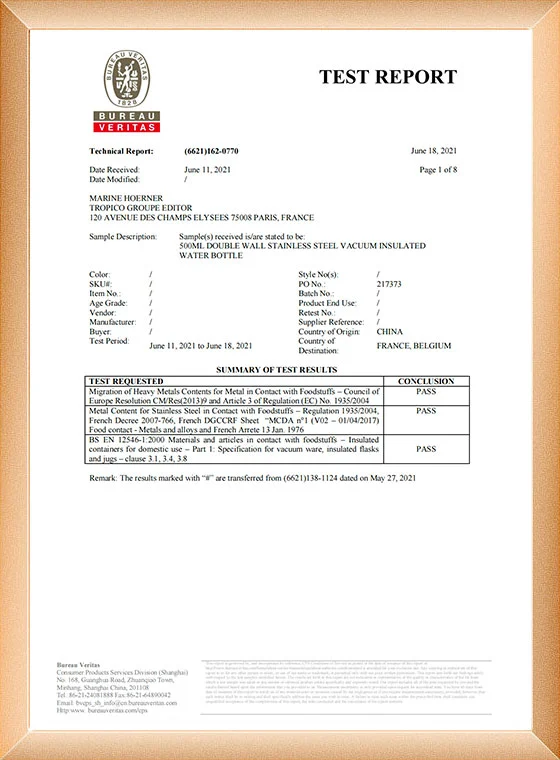ما یک تیم تحقیق و توسعه مستقل با فنجان قمقمه فولاد ضد زنگ مستقل داریم. این کارخانه بازرسی و گواهینامه BSCI را گذرانده است.